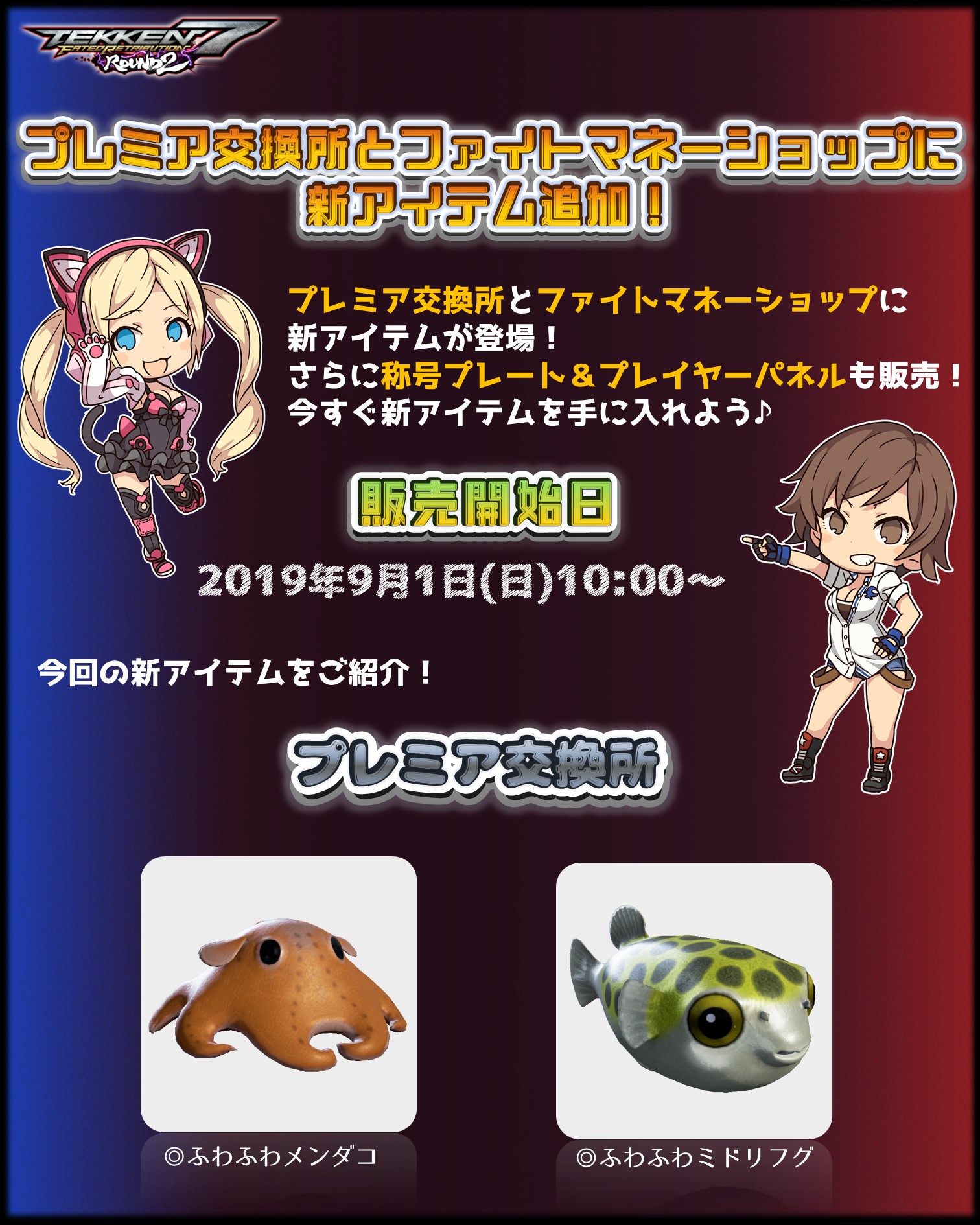 ☆開催内容一覧☆ 【その①】☆プレミア交換所・ファイトマネーショップに新アイテムの追加!↓ 【その②】☆プレミアム会員限定!月替わりアイテムプレゼント!↓ 【その③】☆月間ログインキャンペーン開催!↓ 【その④】☆鉄拳「7」の日ログインプレゼント!↓