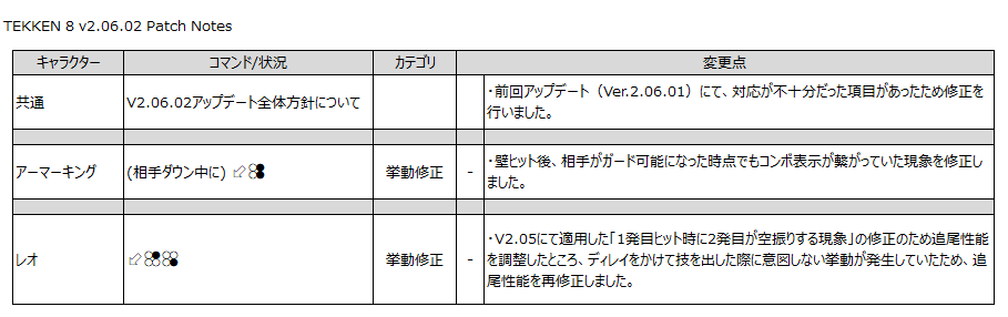 [TEKKEN 8] Update Data v2.06.02 / アップデートデータ v2.06.02