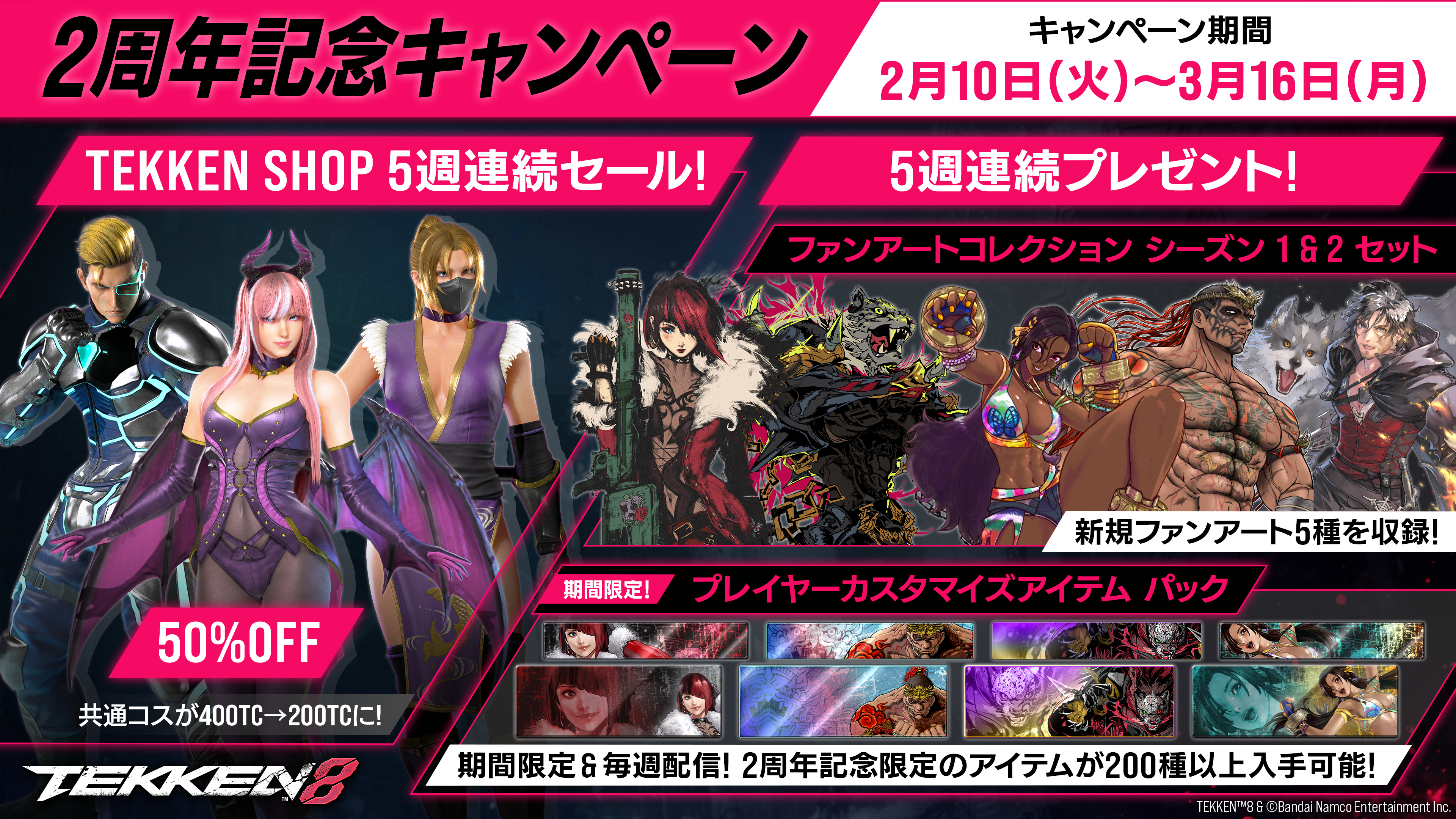 『鉄拳8』の2周年を記念し、2月10日から3月16日までゲーム内にて「2周年記念キャンペーン」を5週連続で開催予定です。