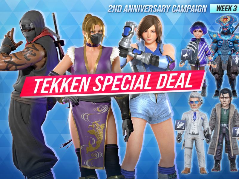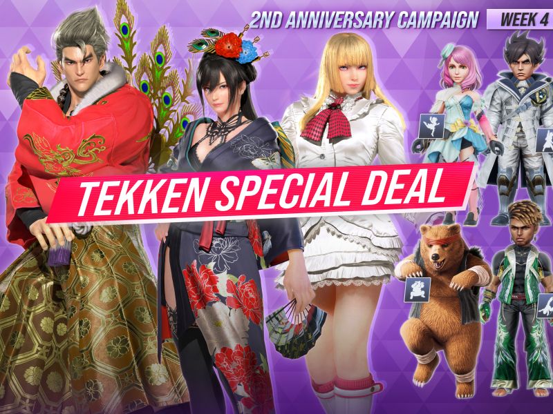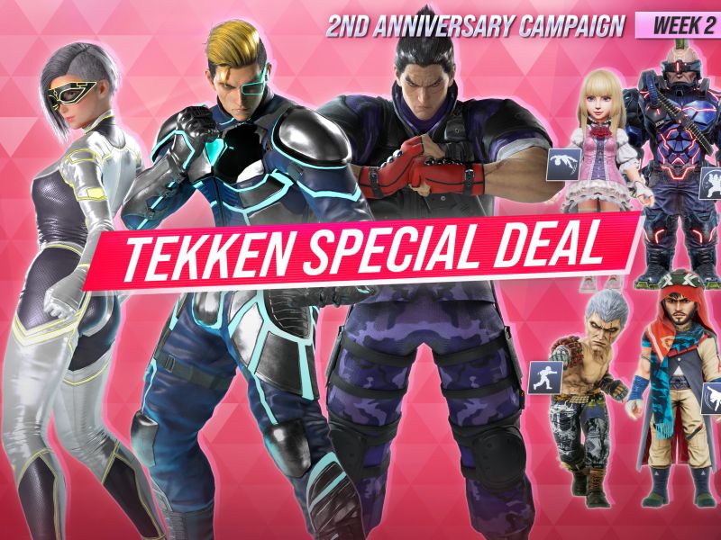 TEKKEN SHOPにて、発売2周年を記念した特別セールが開催中!プレイアブルキャラクターの共通コスチュームを含むカスタマイズアイテムを特別価格で購入できます。セールは5週連続で開催され、毎週ラインナップが更新されます。