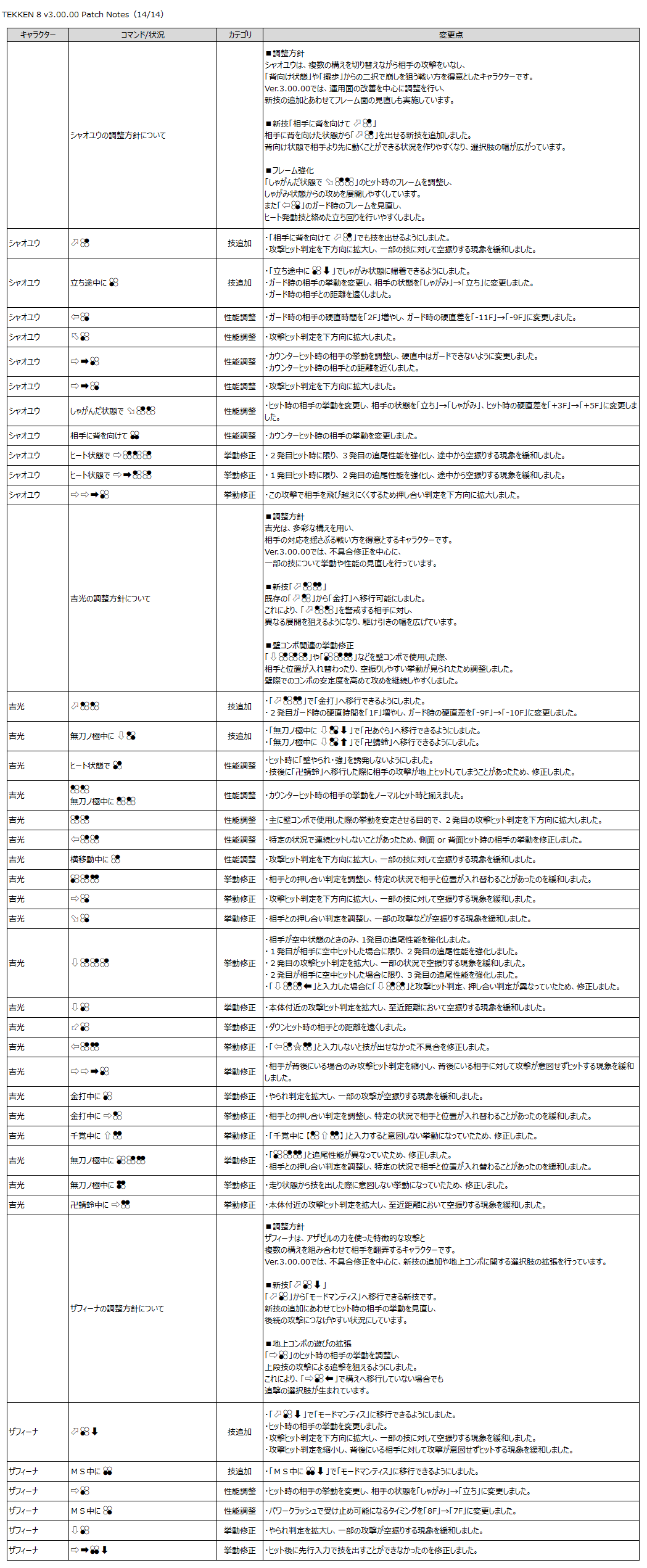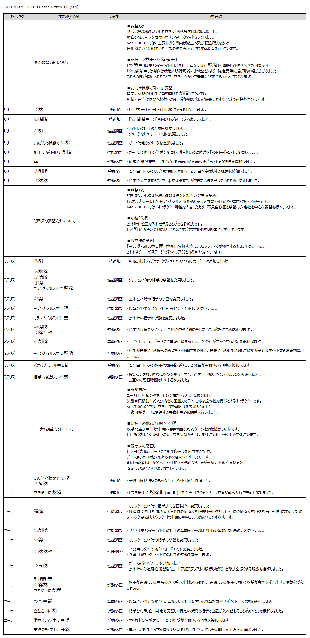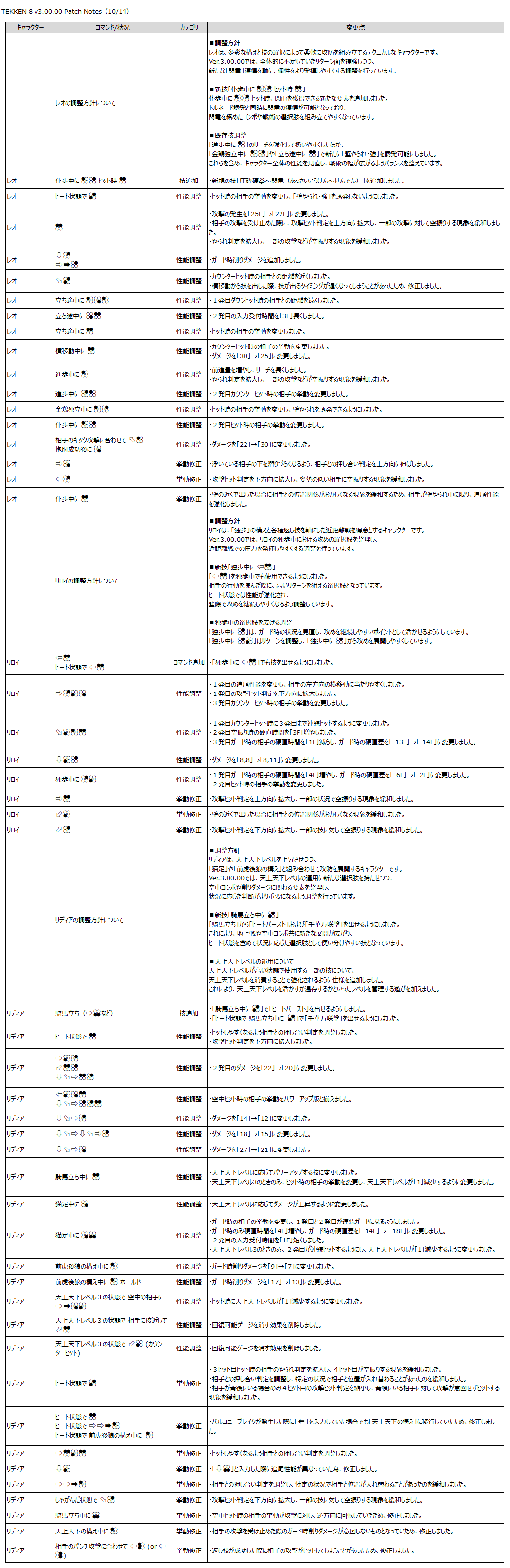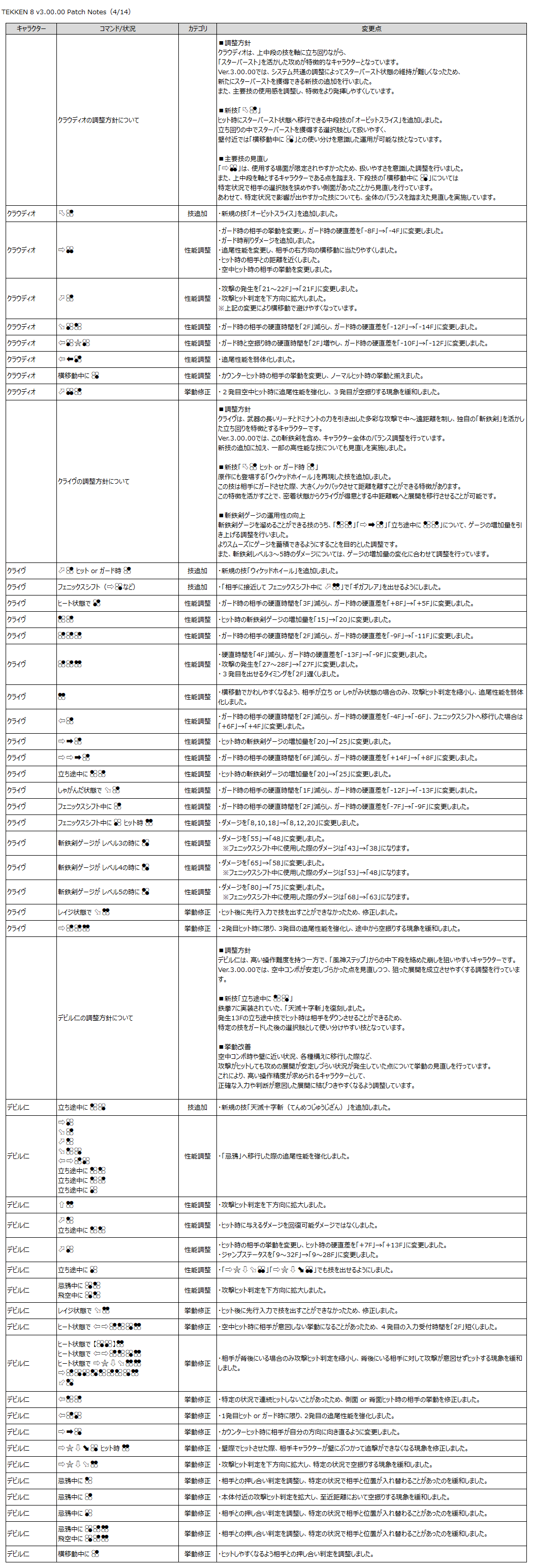 『鉄拳8』のゲーム性と「Refined Balance」の方針に基づき、以下の調整を行います。