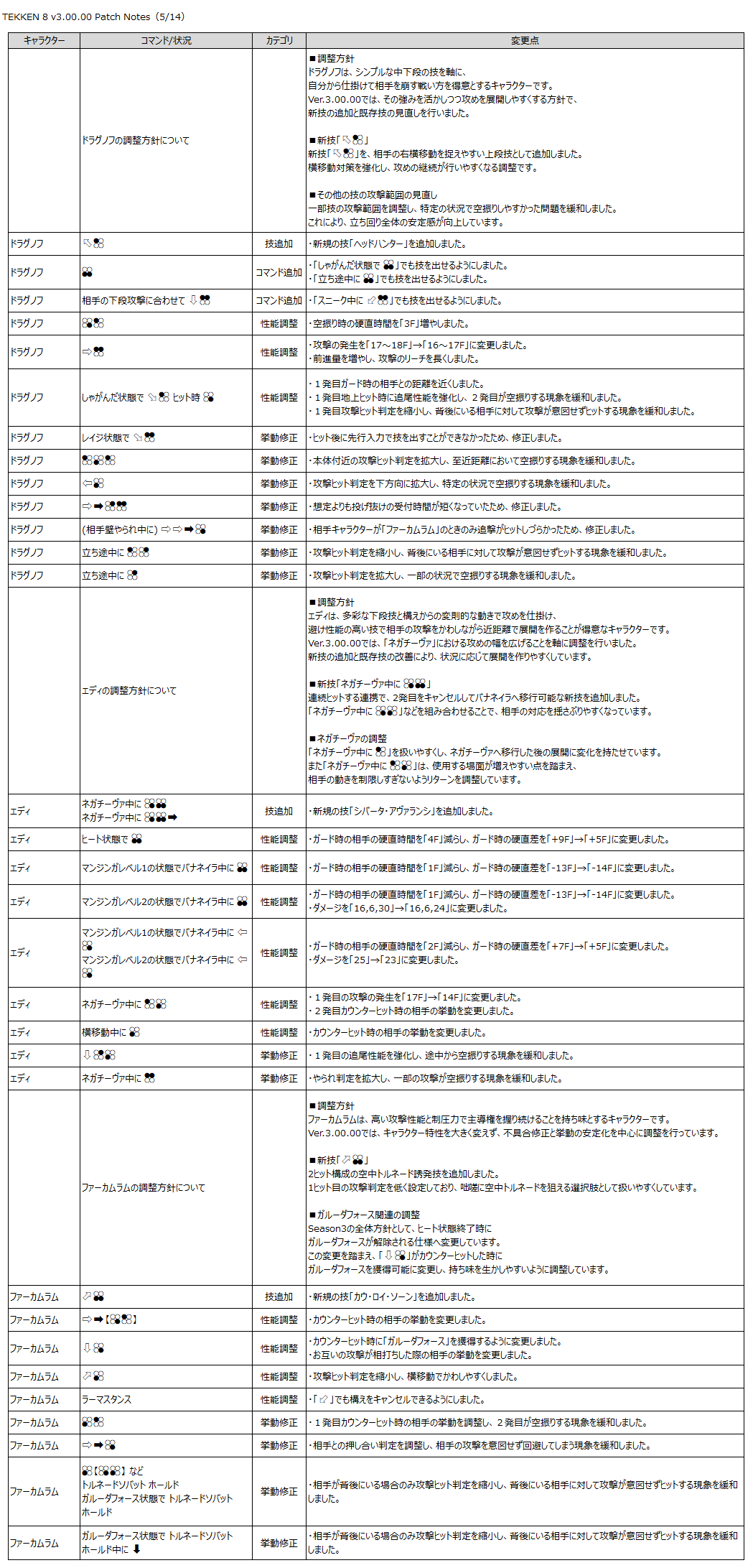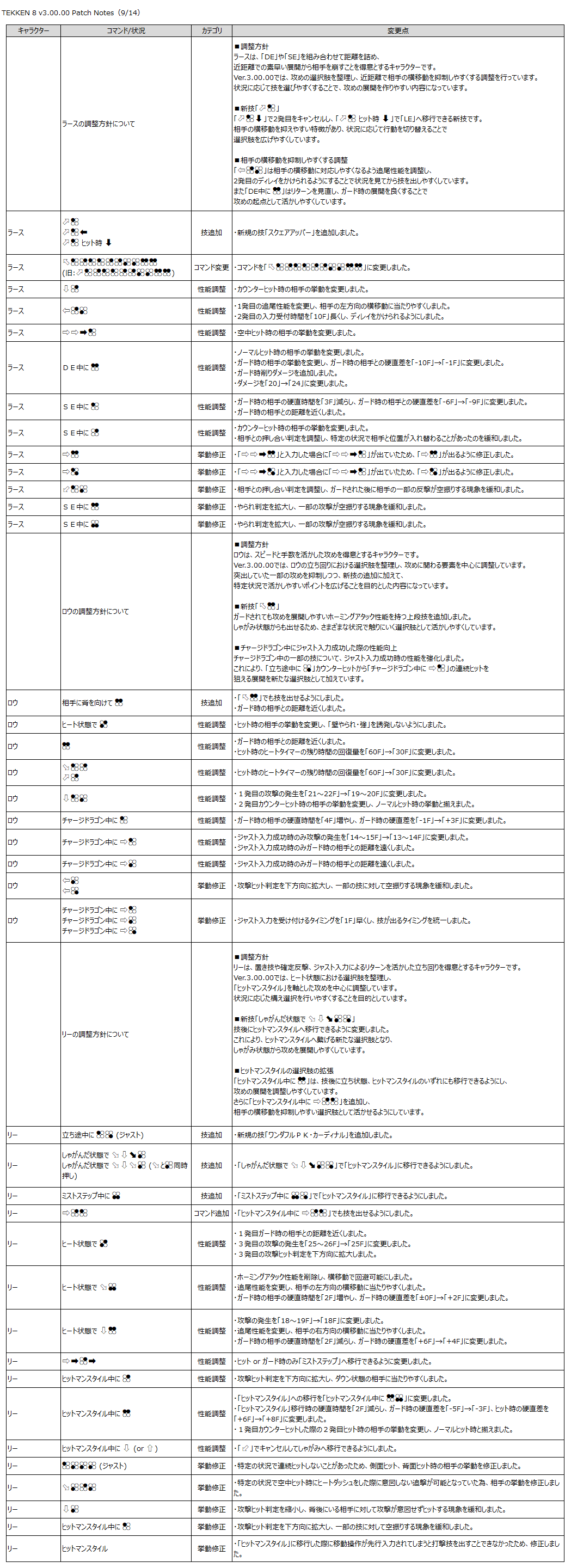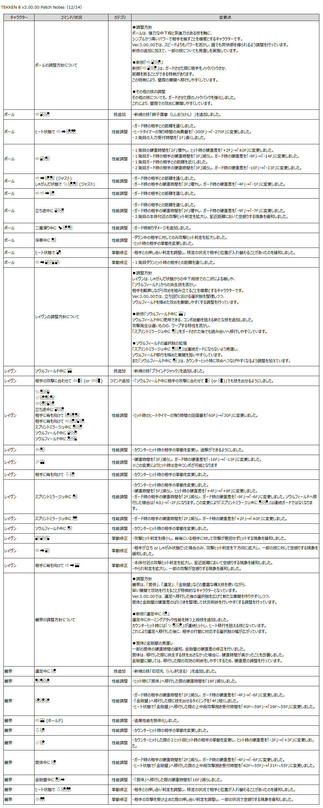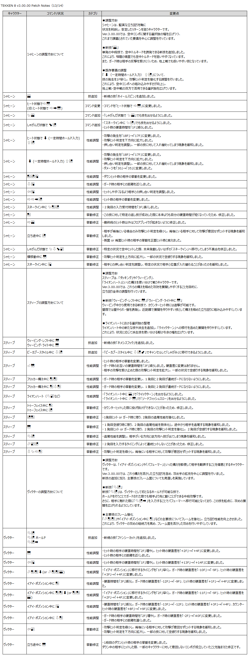 『鉄拳8』のゲーム性と「Refined Balance」の方針に基づき、以下の調整を行います。
